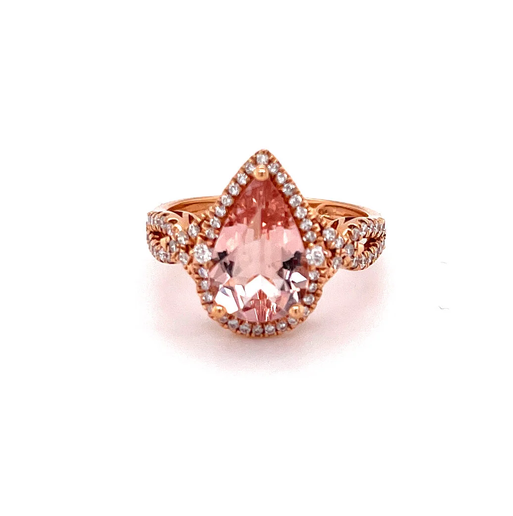 Morganite and Diamond Ring set in 14k rose gold